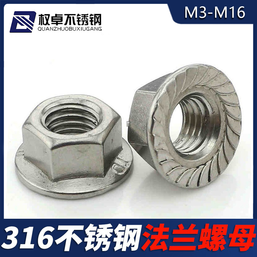 316ステンレスフランジナットM3M4M5M6M8-M16フランジ面緩み防止ナットマット付き滑り止めナット