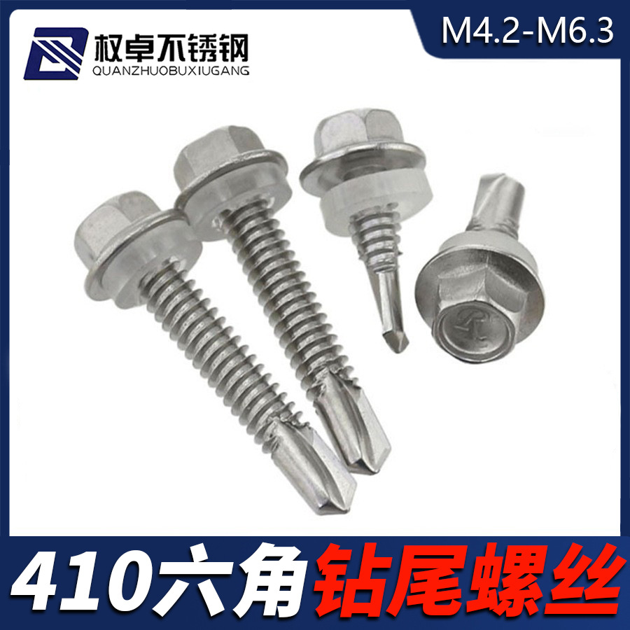 410ステンレス外六角ドリルねじST4.2-ST6.3自攻カラー鋼瓦アリねじ