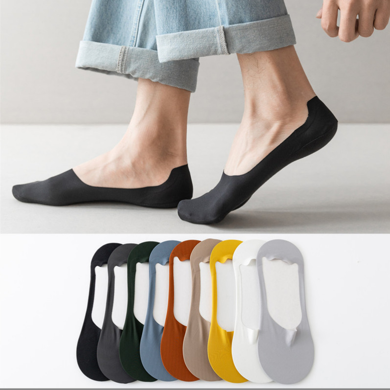 靴下の男性の船の靴下の春と秋の夏の薄い任意のカットの氷の糸の跡の見えない靴下の綿の底の浅い口のシリカゲルの滑り止めの靴下