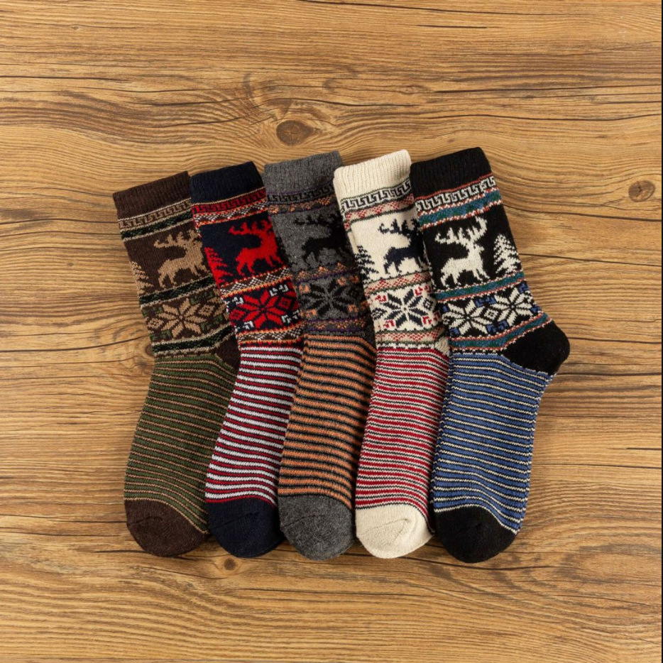 2024新型ヘラジカ冬保温男子insファッション冬綿靴下ウール靴下男性縞中筒靴下