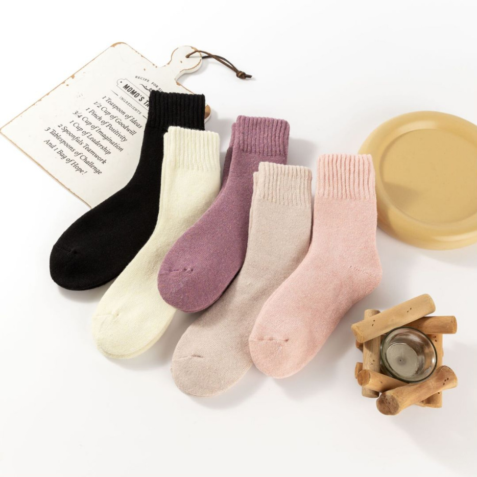 新しいクリームの純色の靴下の子供の秋冬の新型の百合のウールの靴下の中で靴下の快適な保温の靴下の卸売り