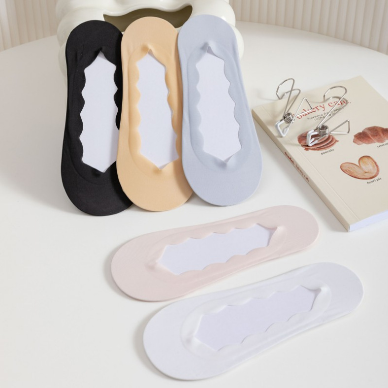靴下の女性の夏の新型の純色の波の辺の浅い口の隠れた靴下の通気性の快適なファッションの組み合わせの靴下の卸売り