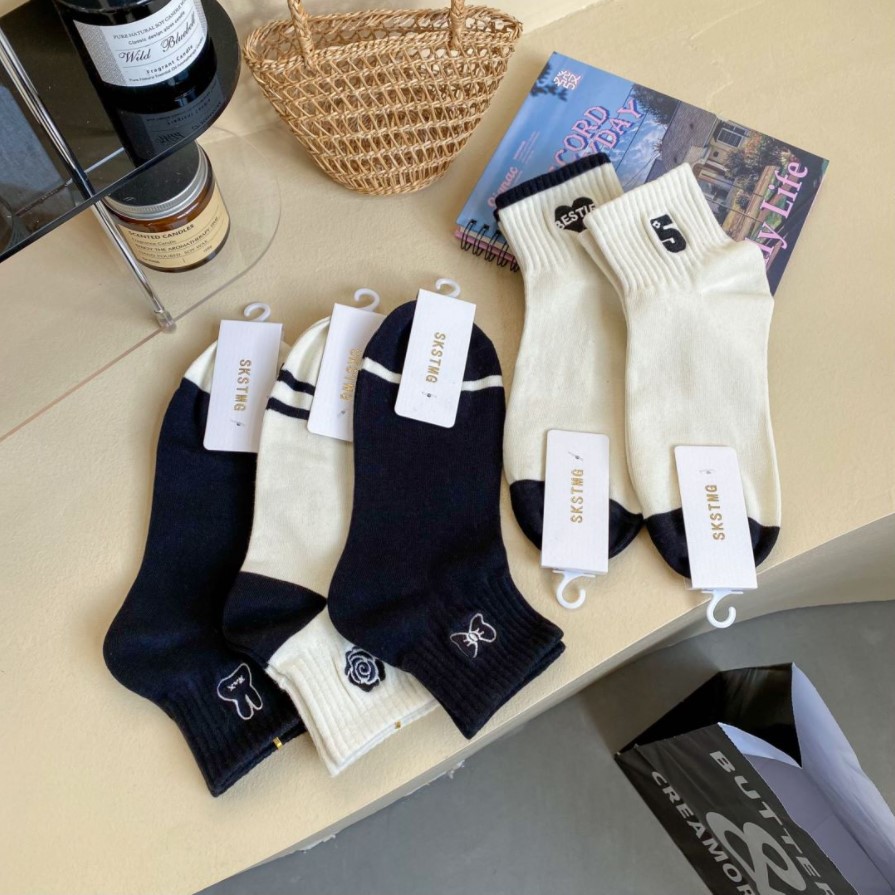靴下の女性のソックス春の夏の薄い香りの風の刺繍の愛の黒い白いinsの潮の学院の風の日の綿