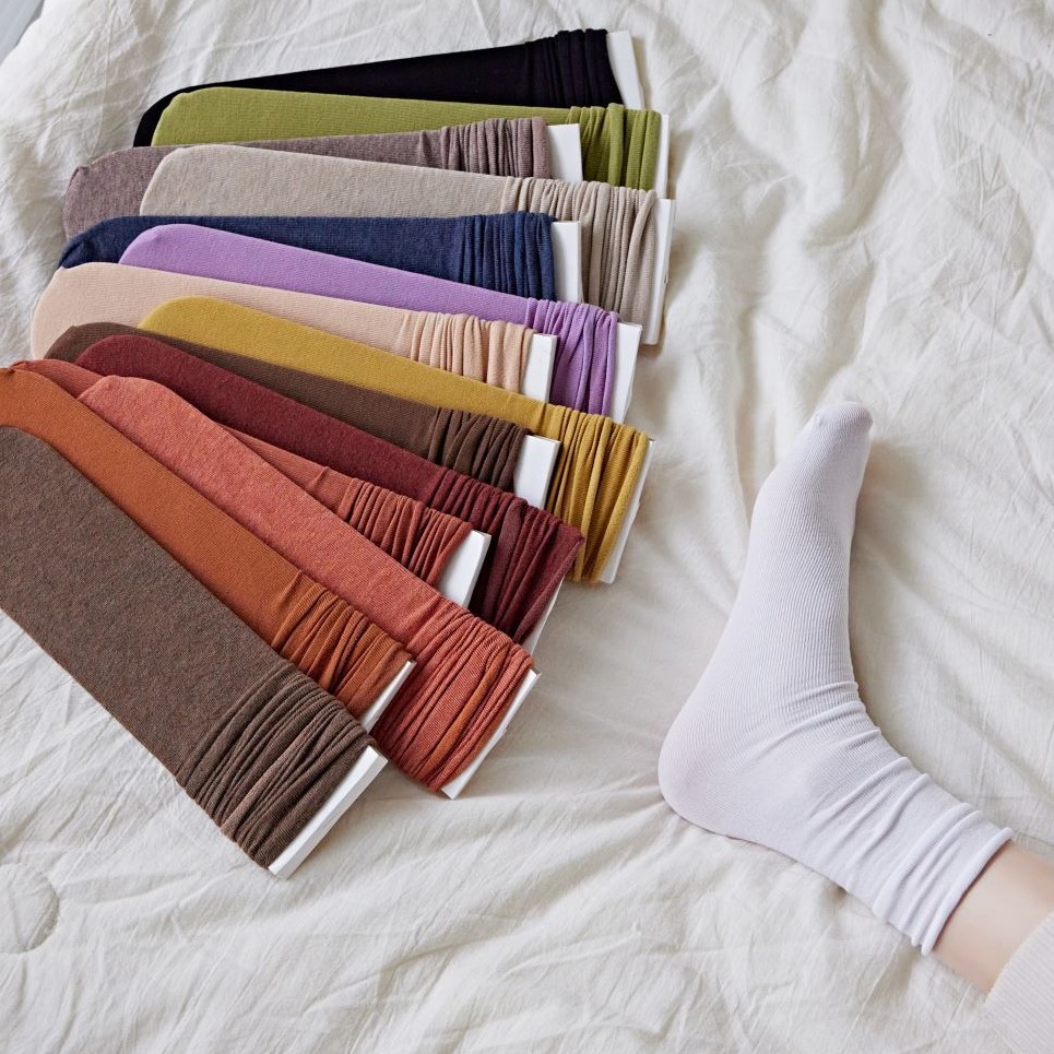 2023春と秋に靴下を積む女性綿の復古色のふくらはぎの靴下の日本の純色の松口学院風jk