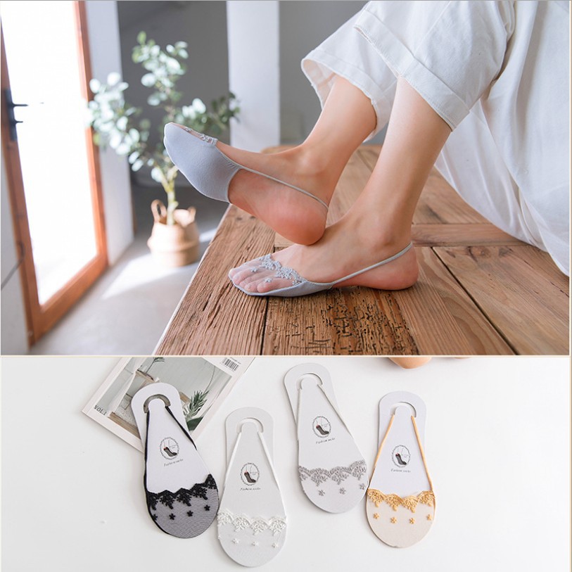 夏の新型ステルス靴下日系女性浅口半掌靴下刺繍レース船靴下ストラップ靴下