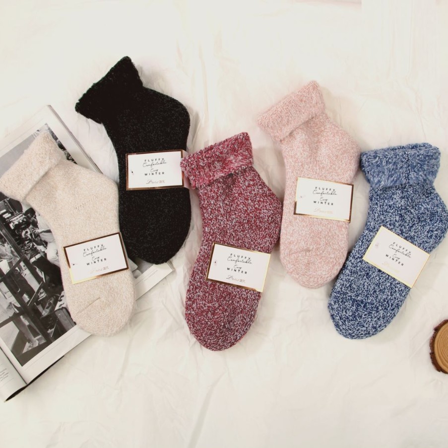 秋冬の新型の厚い縁の女性の靴下の保温の純粋な色の靴下の子供の無地の日本の中筒の毛の暖かい靴下