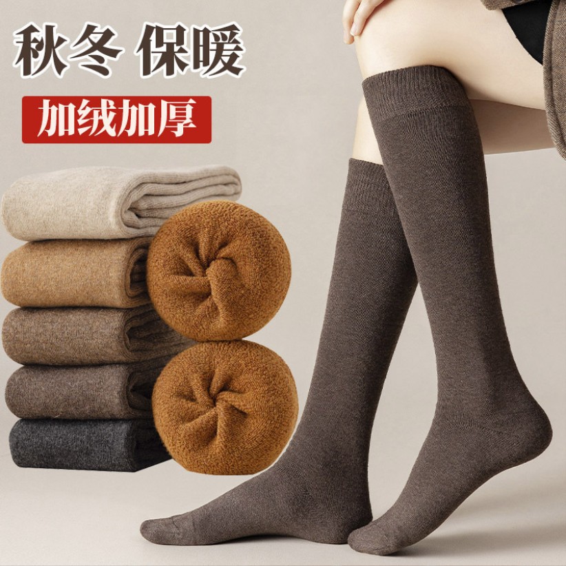 靴下の女性は秋冬にベルベットをつけて毛輪靴下の純色を厚くして毛を伸ばして保温する中筒靴下の月子靴下の睡眠靴下