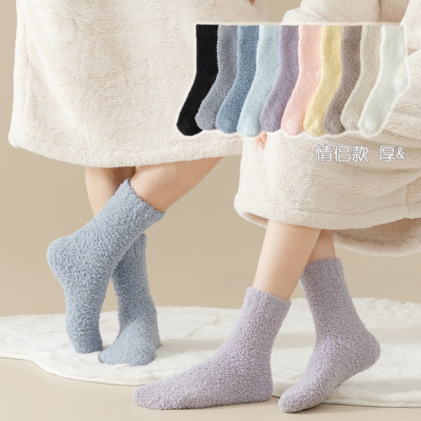純色の珊瑚の絨毛の靴下の女性のカップルの靴下は厚い保温の男性の靴下の日本のins風の家の床板の靴下を厚くして毛が落ちません。