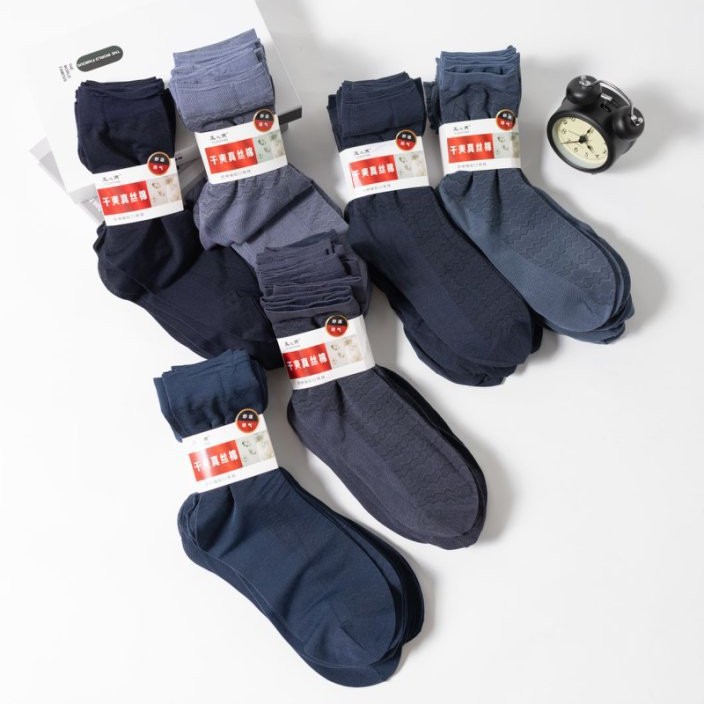 春夏の新作男性用ストッキング、ルーズシルクコットンストッキング、引っ掛かり防止、耐久性のあるミッドチューブストッキング、ヒール付きストッキング卸売