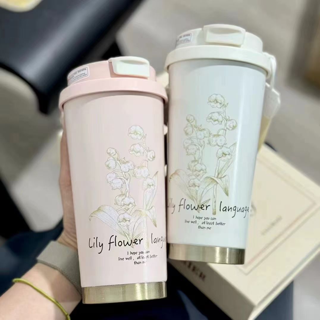 新品軽豪華すずらん保温カップ高颜値insダブルドリンクストローカップ大容量誕生日プレゼントコーヒーカップ