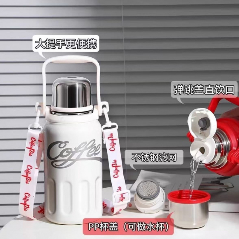 大容量316食品級ステンレス保温カップ高颜値ストラップ運動水筒コカコーラ保温ポット