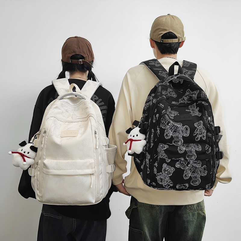 背もたれをマイナスにして大学生のカバンinsの新型の熊のアルファベットの図案のリュックサックの大容量の旅行のリュックサック