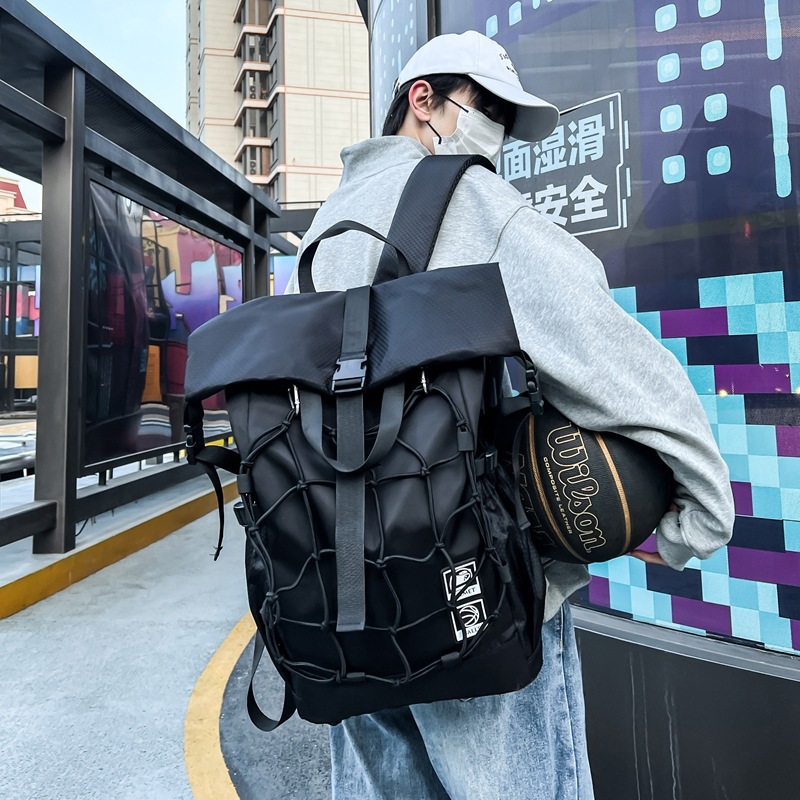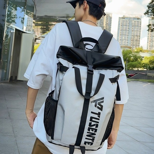 ランドセル感の新しいファッションの巻き口のスポーツのバスケットボールのバッグはヘルメットのリュックサックの男子学生のカバンに乗ります。