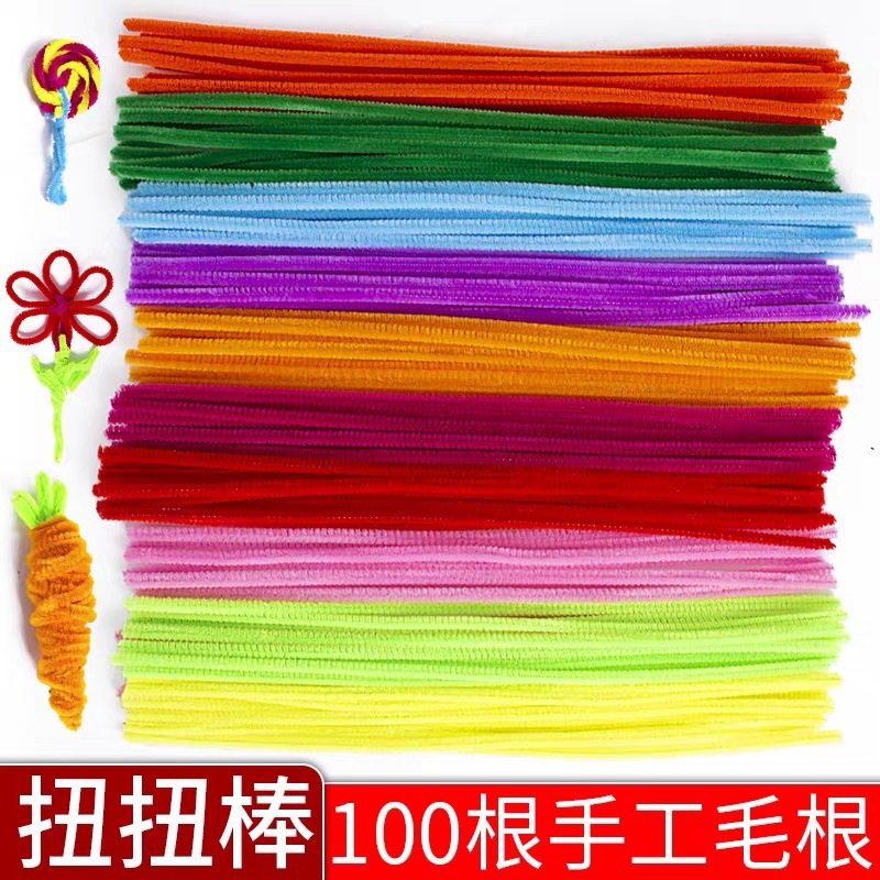 単色ねじり棒パイル100本子供手作りdiy毛羽筋チューリップ材料マカロン色卸売り
