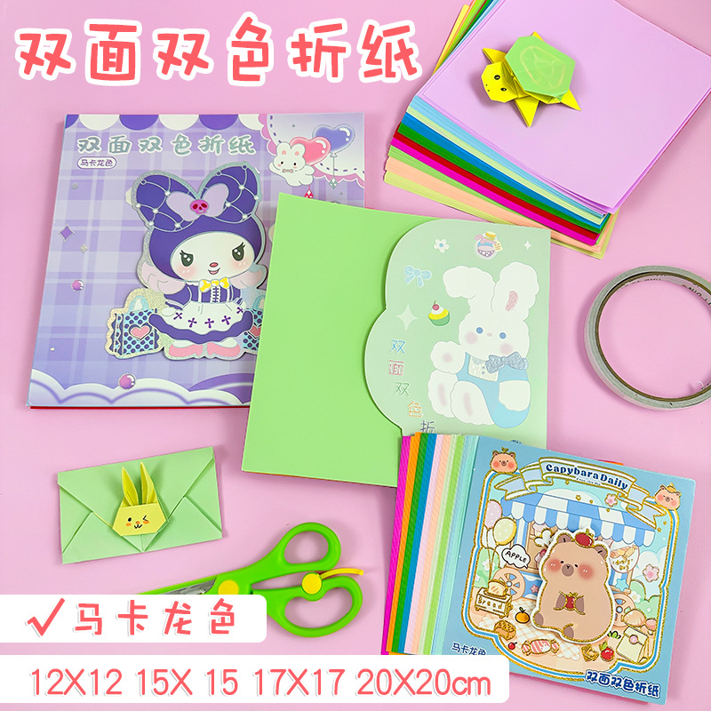 両面2色カラー紙マカロン配色折り紙専用紙正方形紙子供学生手作り紙卸売り