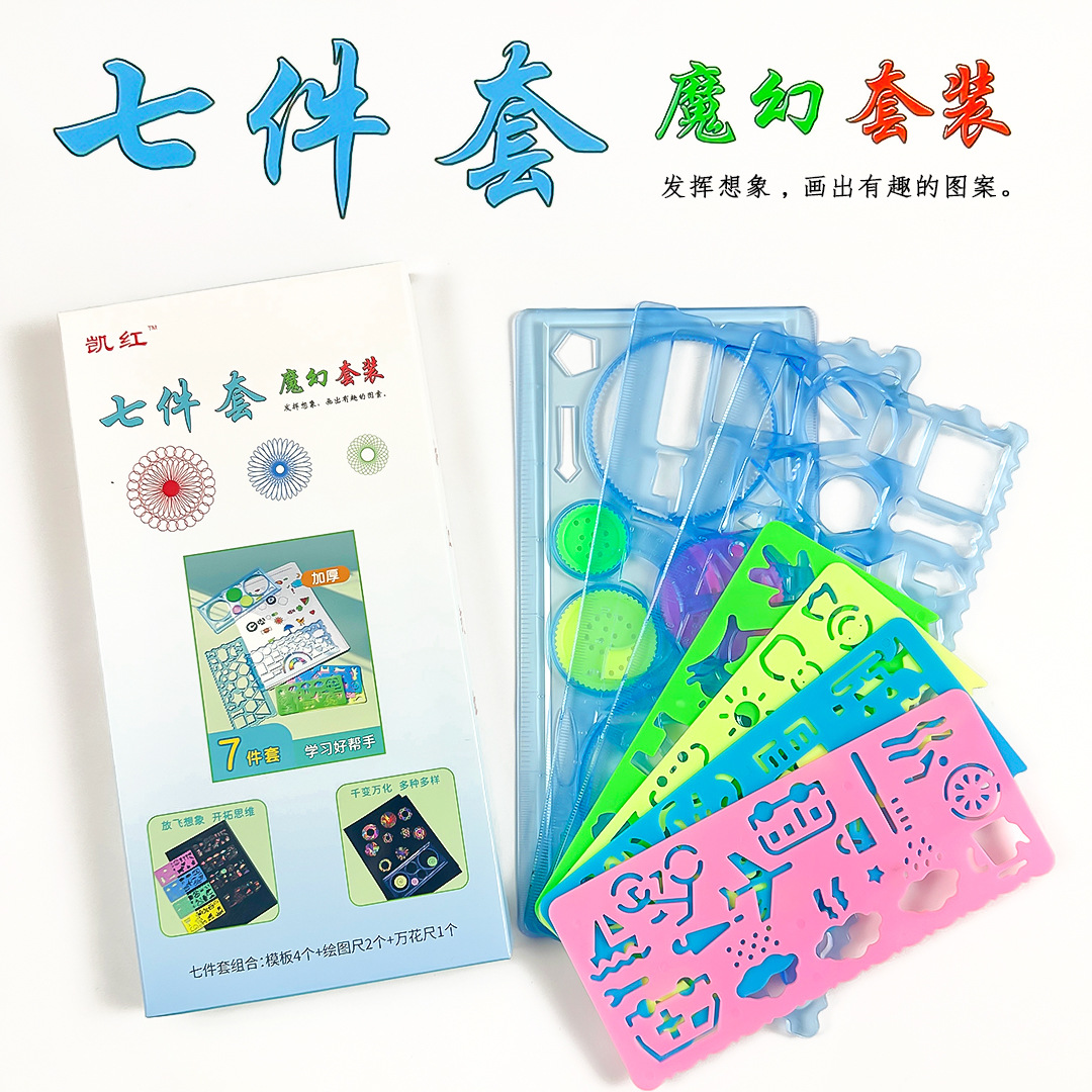 カラーボックス入り多機能絵画定規7点セット子供用絵画テンプレート定規万華定規小学生文具セット