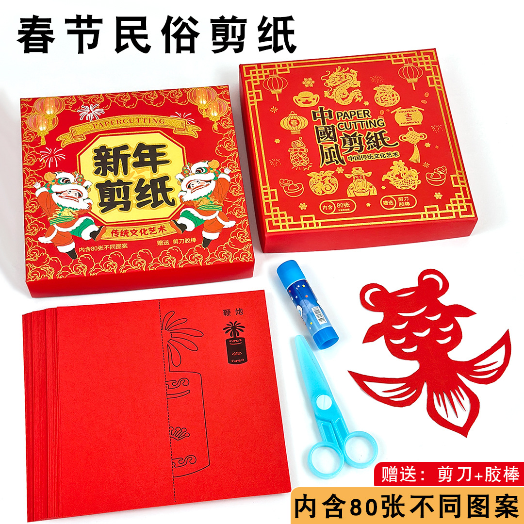 旧正月中国風切り紙切り窓花児童学生新年切り紙十二生肖手作りDIY新年飾り