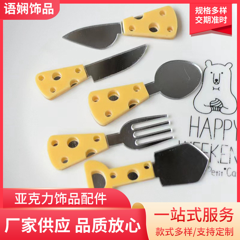 鏡面チーズチーズかわいいフォークスプーンアクリルアクセサリー携帯電話ケース髪飾りdiy材料卸売り