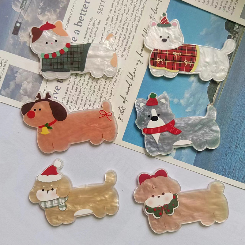 子供のクリスマスの漫画のヘアピンの高級感のアクリルの少女の髪飾りの日本の趣味の猫の犬のサイドクリップのヘアピン