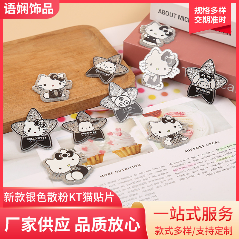 新しいシルバーパウダースターキティ猫クロメパッチアクリル流砂漫画ステッカージュエリーアクセサリー卸売