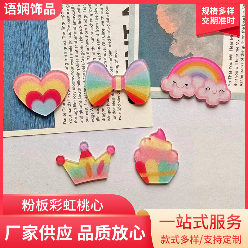 フラッシュボード虹桃心漫画虹愛蝶アクリルdiy携帯ケース材料製作ヘアアクセサリー