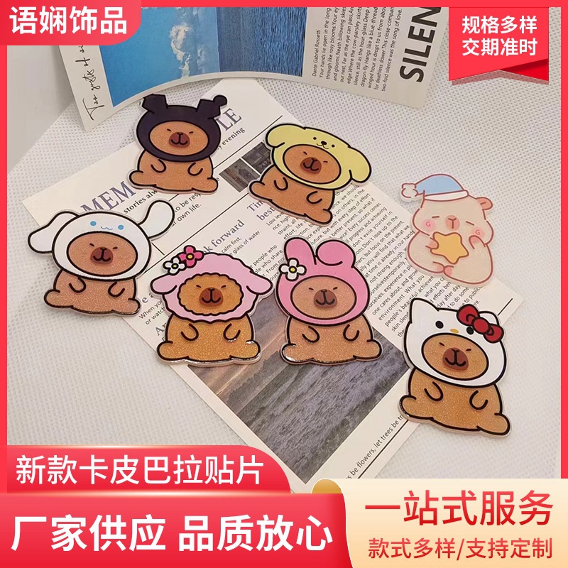 新商品のカピバラはアクリルのアクセサリーの部品を貼ります。