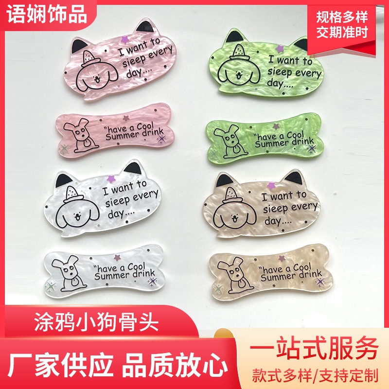 落書き子犬の骨の漫画の動物の長い条の髪のクリップの部品の材料はDIYの子供のアクセサリーの部品を卸売りします。