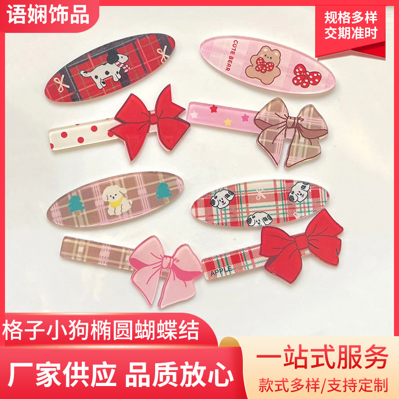 シンプルな格子の子犬の楕円の蝶結びのアクリルのパッチヘアクリップのアクセサリーDIYの手作りの材料の部品の卸売り