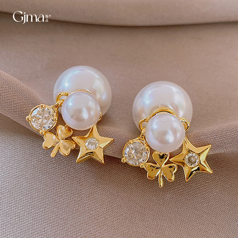 真金メッキ銀針ジルコン花星真珠ピアスファッション気質イヤリングフランスレトロ軽贅沢耳飾り