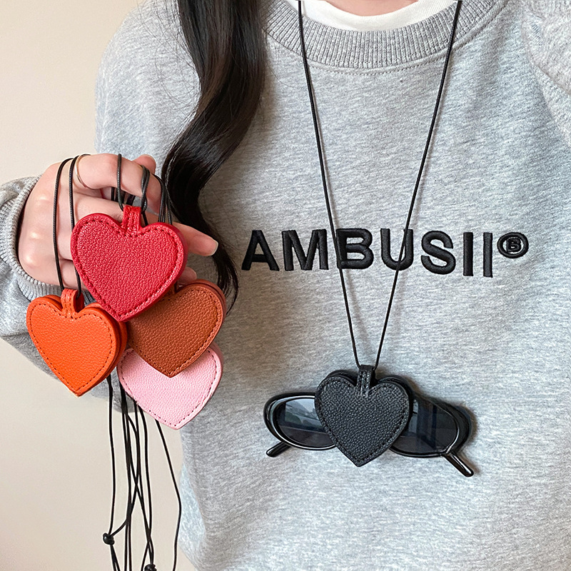 多巴胺彩色皮革爱心吊坠项链简约高级感锁骨链时尚设计感小众项饰