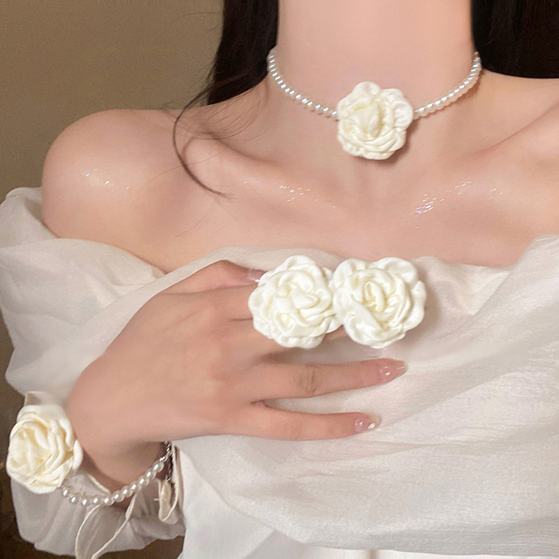フランスのレトロな真珠の花のネックレスのファッションの甘い潮流の鎖の骨のチェーンの新型の百合の少女の心の項は卸売りを飾ります。