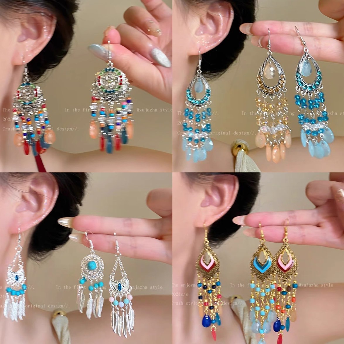 ボヘミアンエスニックスタイルクリスタルタッセルイヤリングライトラグジュアリーハイエンドイヤリングパーソナライズされたデザインニッチイヤリング女性用