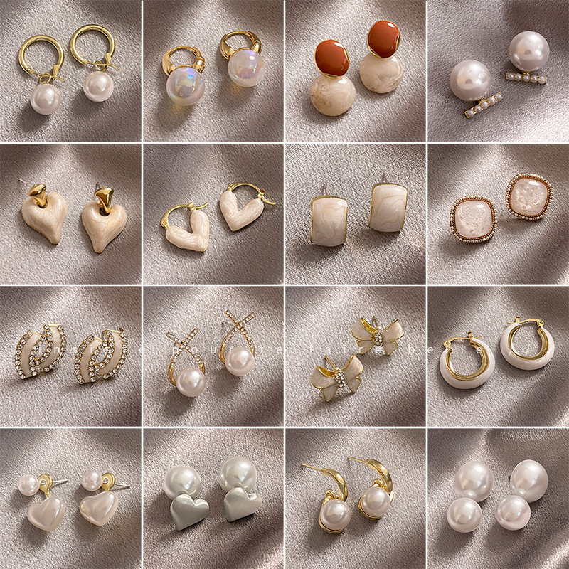 銀の針の復古の気質の白い愛の真珠のピアスのファッションの個性のイヤリングのネットの赤いネットのシンプルな高級感の耳飾りの女性