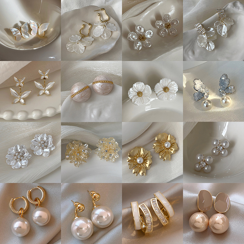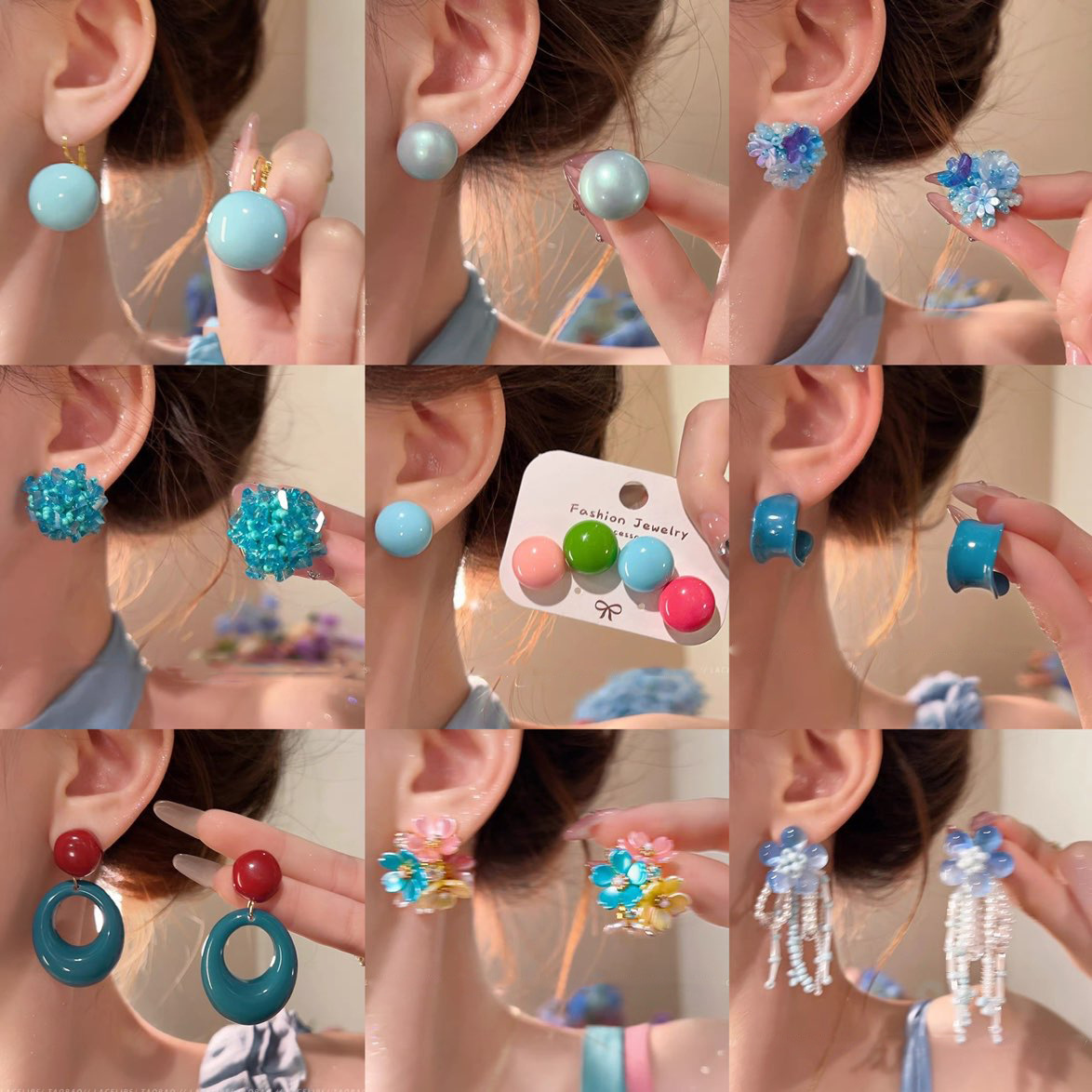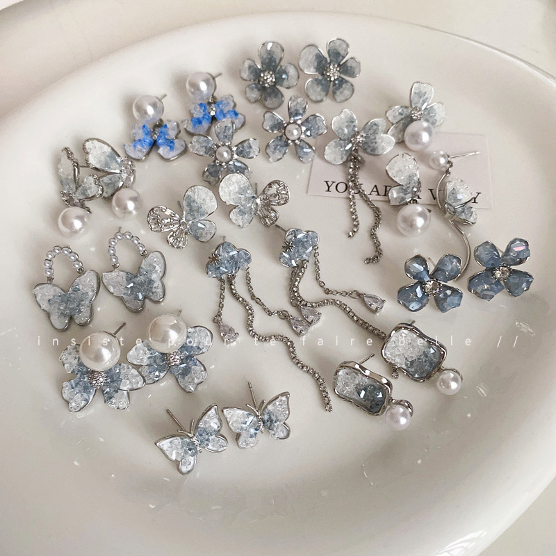 銀針小清新ブルーリゾート風花真珠イヤリング軽贅沢高級感ピアス小大衆デザイン感耳飾り