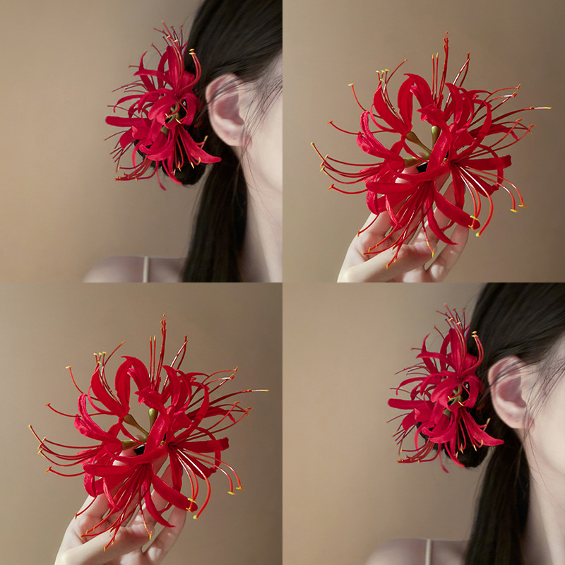レトロな赤い彼岸の花のカモの口は高級感のサイドの前髪を挟んで、超仙のファッションのリゾート風の髪飾りを挟みます。