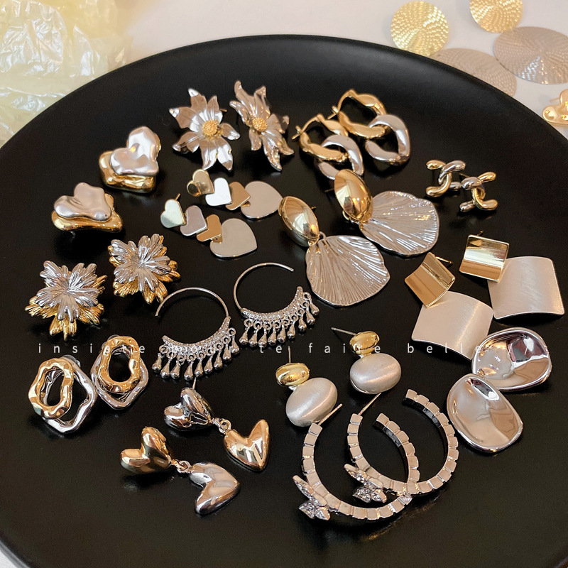 銀針の不規則な花の愛の金の銀色の幾何学のイヤリングは軽くて豪華なファッションのピアスの個性の高級感のイヤリングの女性です。