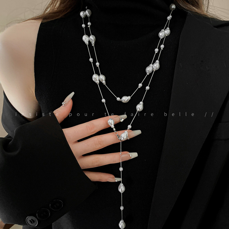 フランスのレトロなバロック真珠のフリンジの長いネックレスの女性の気質のセーターの鎖の鎖の軽い豪華な高級感のアクセサリー