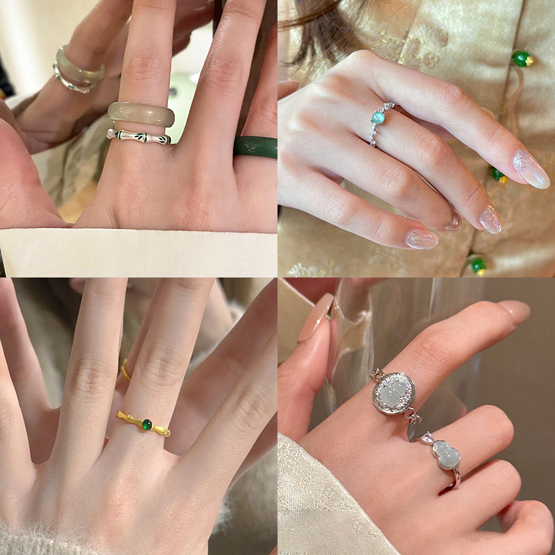高級感の緑に竹のヒョウタンの開口指輪を入れて、新しい中国式のレトロな個性の手飾りの女性を指します。