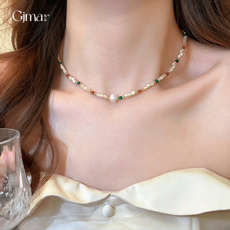 軽い豪華なドーパミン貝珠バロック真珠のネックレスはシンプルです。