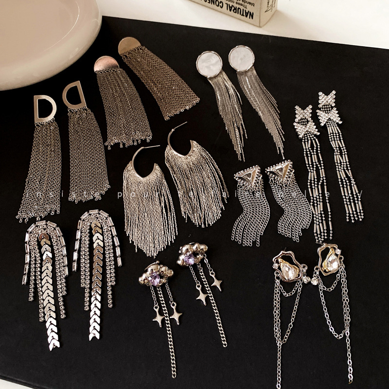 銀針夜市の露店の花のジルコンの星のフリンジのピアスのファッションの気質のイヤリングのシンプルで高級感のあるイヤリングの女性