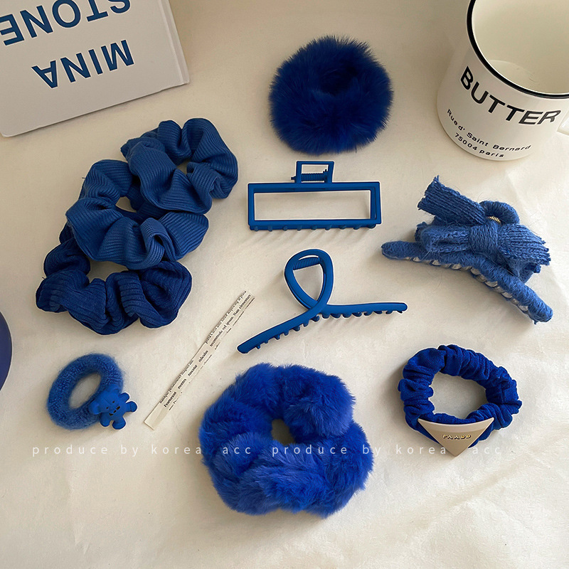 クラインブルー布芸秋冬ベルベットの髪輪韓国の団子の髪ひもが髪輪を結んでいる気質がシンプルな髪飾り