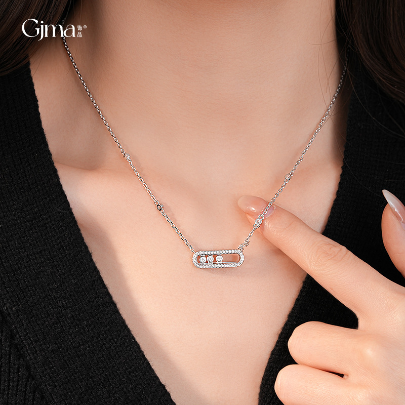 韓国ファッションスライド可能ジルコン楕円透かし彫りネックレスシンプル高級感鎖骨チェーンファッション通勤アクセサリー女性