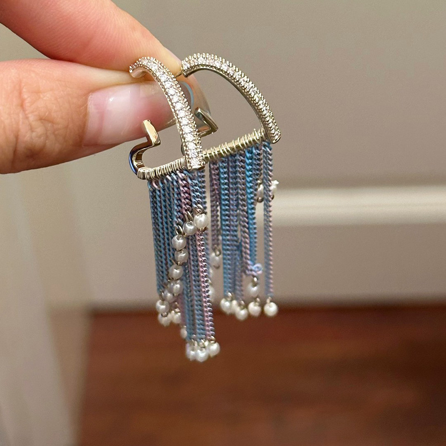 銀針民族風ダイヤモンド装飾ラウンドパールクリスタルタッセルイヤリングファッションイヤリング軽奢高級感イヤリング卸売