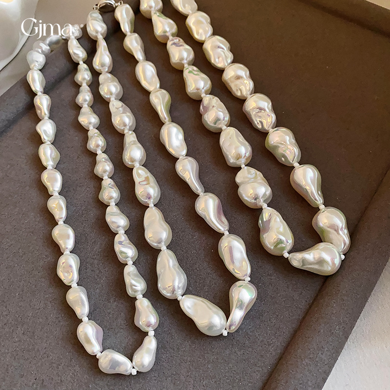 フランスの軽豪華な不規則なバロック真珠のネックレスの小さい大衆の鎖の鎖の毛の鎖の軽豪華な高級感の女性