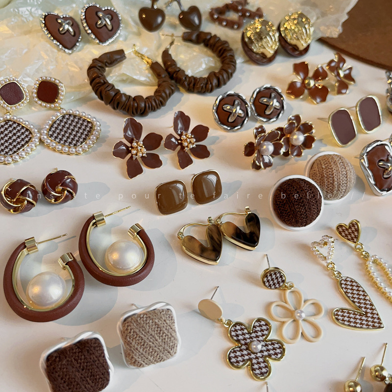 銀針美ラードカレー色の花愛イヤリング韓国個性ピアスネット赤レトロ高級感耳飾り卸売り