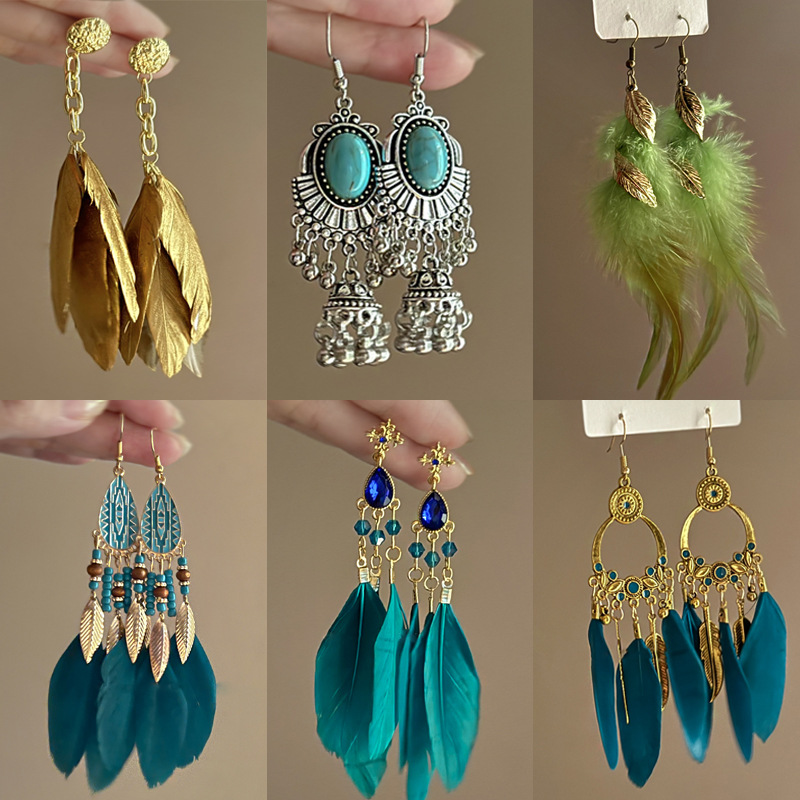 ボヘミアンの米の玉の羽のフリンジイヤリングのレトロな大衆の個性のファッションのイヤリングは欧米の越境して大げさな耳飾りを誇張します。