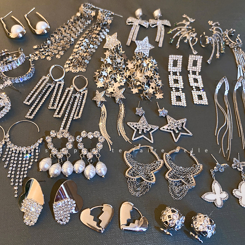 銀の針のファッションはダイヤモンドの愛の星を入れて明るくします。
