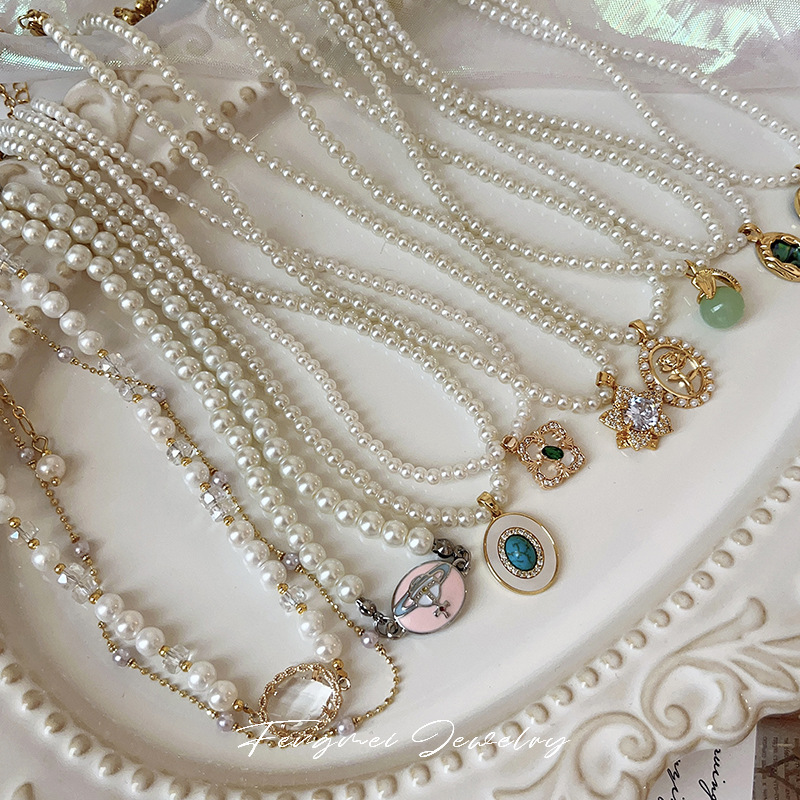フランスのレトロなジルコンの花の土星の真珠のネックレスは軽くて豪華です。