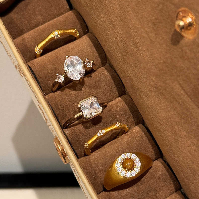 レトロな幾何学の糸を引く竹節のジルコンの開口の指輪は簡単でファッション的な中古風の食べ物の指の指輪の軽贅沢な手飾りの卸売りです。