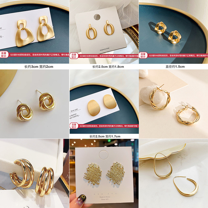 18k真金メッキ銀針滴油プリントC形イヤリング小衆個性流行ピアス軽贅沢高級感ピアス